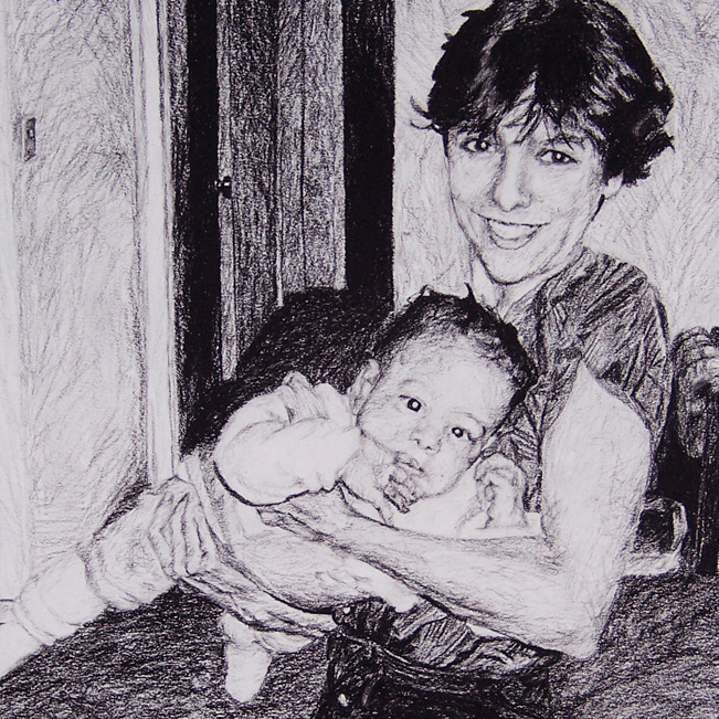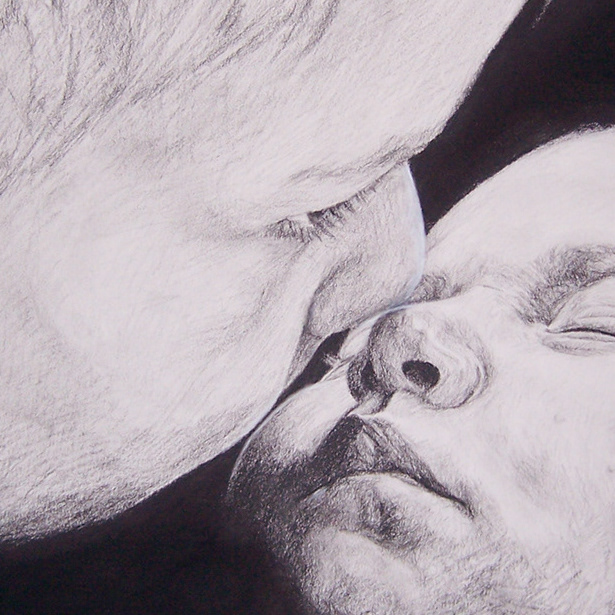 Mother and Child Portrait Charcoal